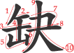 자원풀이 ① 동이(缶 오지 그릇)의 이가 빠졌음(夬 터놓을 쾌) ‘모자라다’ ‘무너지다’ ‘이지러지다’ ‘부족하다’