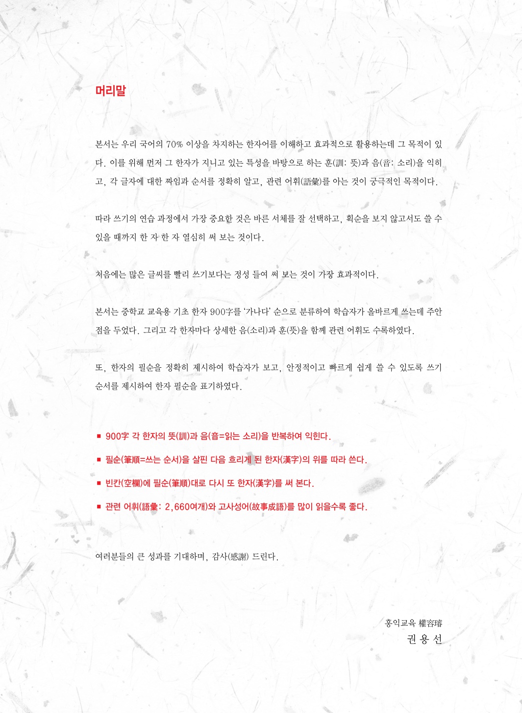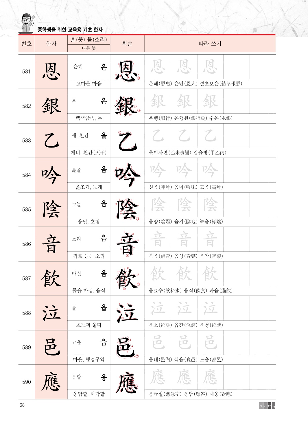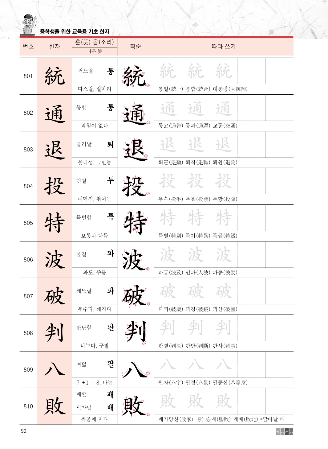 당사는 이번에 교육부 선정 교육용 기초 한자 '중학교 기초 한자 900字 따라 쓰기'를