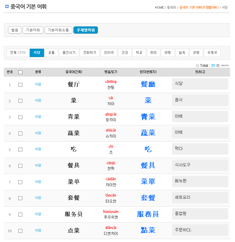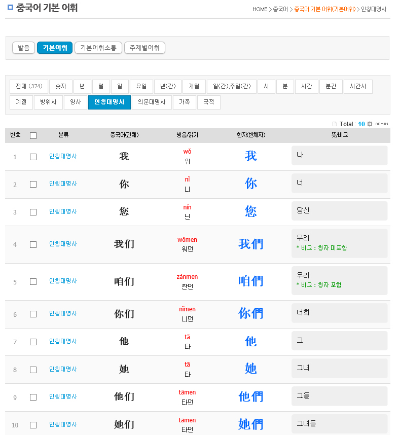 아이한자는 이번에 '중국어 기본 어휘' 서비스를 아래와 같이