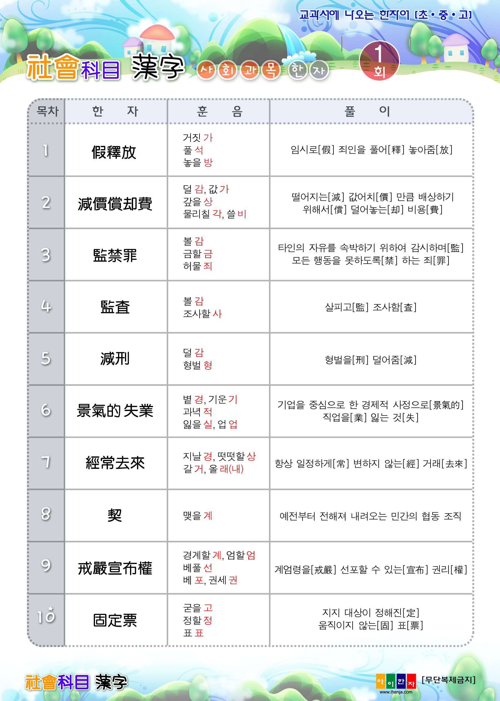아이한자는 과목별 한자 서비스(사회, 수학, 과학)를 아래와 같이 안내드립니다.