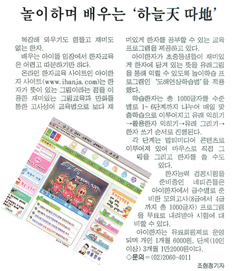 2002. 05. 08 [매일경제신문] 놀이하며 배우는 '하늘天 따地'