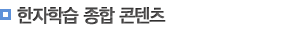 한자학습 종합 콘텐츠는 漢字(한자) 문화권의 우리 民族(민족)의 뿌리를 찾아내고 우리의 多樣(다양)한 學問(학문)의 밑바탕인 한자교육의 早期化(조기화)에 뜻을 두고, 初等(초등)시기부터 漢字(한자)와 친숙해지는 環境(환경) 造成(조성)을 위해 만든 콘텐츠이다. 구성 내용은 아래와 같이 급수한자, 고사성어, 속담, 교과서 한자어로 構成(구성)하였다.